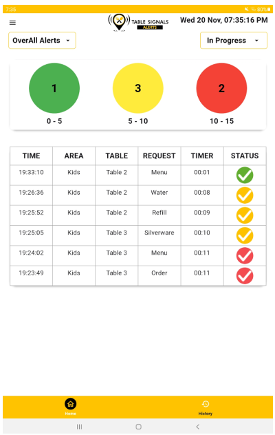 Table Signals – Alerts is a restaurant’s dedicated app, providing staff with real-time updates on guest requests as they arrive. Designed to enhance service speed, it offers clear, visual cues that help staff respond efficiently.